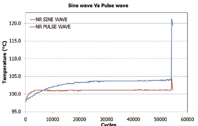 Various series of HBU tests have been performed with both sinusoidal and pulse waveforms. In sinusoidal wave form, HBU test data correlates with traditional flexometer instruments. In pulse mode, the HBU test data is quite different, as shown in Figure 6.